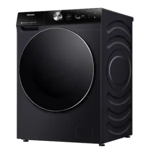 Machine à laver HISENSE 7S 12 Kg Smart، moteur Inverter silencieux، 1400 tr/min، écran TFT tactile، programmes intelligents AI، lavage vapeur Steam et auto-dosage pour أداء قوي ونظافة مثالية.