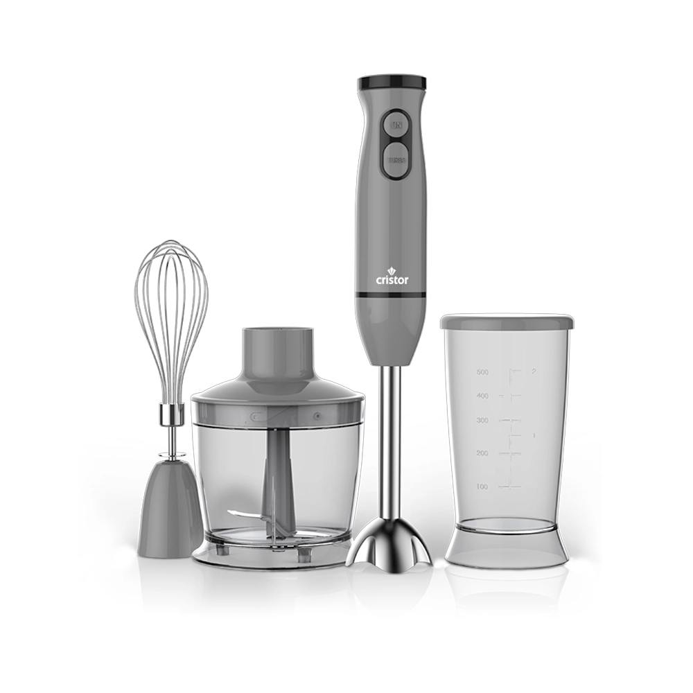 Bras Mixeur 3 en 1 CRISTOR Bras mixeur, Hachoir et Bras Fouet -500 W- 500 ML – Gris_noir HB-K55GN